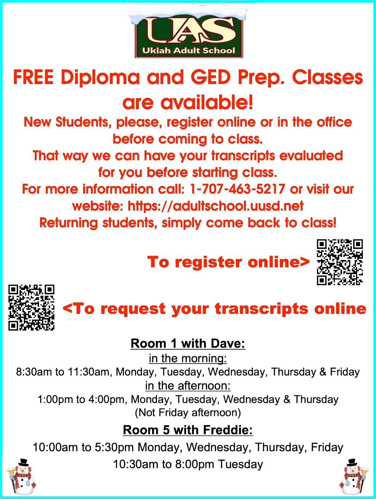 Register from the comfort of home, for FREE, any day, at any time for the GED®. Ukiah Adult School offers the GED® test. The GED® test on computer offers test-takers a better testing experience, featuring: